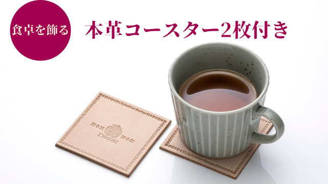 - クラファン限定!オーダーメイド革製品店ならではの“本革コースター”付き。