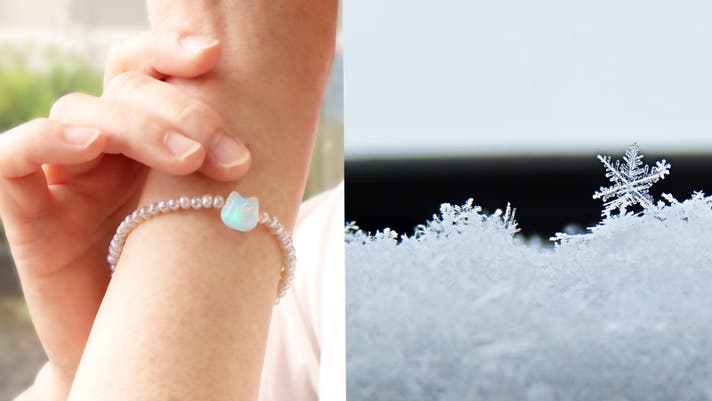 虹色オパールとパールの柔らかな輝きが織りなす、静かで優雅な時間。