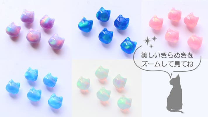 クリエイテッドオパールは環境への配慮をした人工オパールです。遊色効果が美しく、天然オパールでは実現できないサイズや、カラーバリエーションを作ることができます。また、内部クラックも無く、水分に強く、耐久性もあるため、様々な形に加工することができます。私たちは職人に依頼して、オリジナルで猫ちゃんの形にオパールを加工してもらいました。
