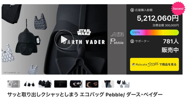「Makuake(マクアケ)」は、実行者の想いを応援購入によって実現するアタラシイものやサービスのプラットフォームです。このページは、 プロダクトカテゴリの 「サッと取り出しクシャッとしまう エコバッグ Pebble/ ストームトルーパー」プロジェクト詳細ページです。