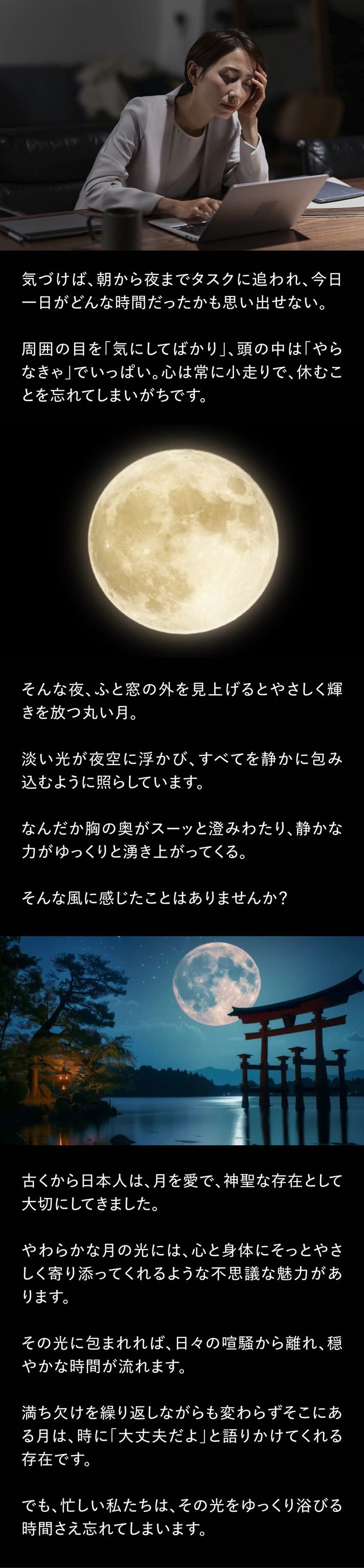 月光浴という言葉があるように、月の光には癒しの時間を与えてくれるパワーが宿っています。