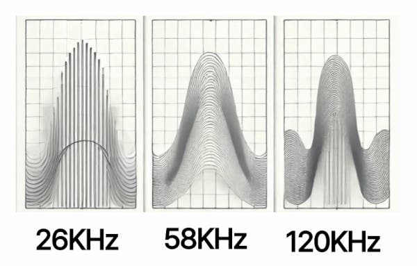 洗浄に優れた超音波はレンズの損傷が少ない ! 低周波の26KHzは大きな粒子の汚れ除去に効果的ですが、微細な汚れの除去が難しく、高周波120KHzはレンズに損傷を与える恐れがあるため、最も効果的な洗浄と高い安全性を期待できる58KHzを搭載し、洗浄性能と安全性の高い周波数を採用しました。
