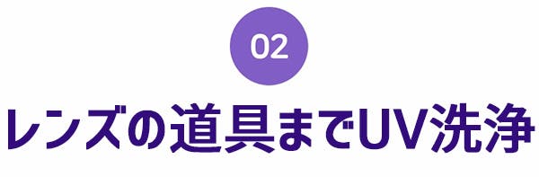 UV除菌に重要な要素はレンズの“距離”です。除菌に最も適した『0.2~0.3cm以内の距離』で、レンズを強力に除菌します。