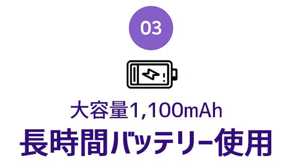 - 約130g!小さくて軽量 ! 持ち運びも楽々♪しかも1,100mAhバッテリーで長時間使用OK