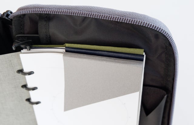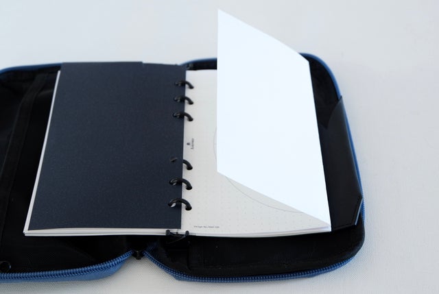 右側のノートの後ろには名刺や付箋、クリップなどを忍ばせておくのにちょうど良いスペース。