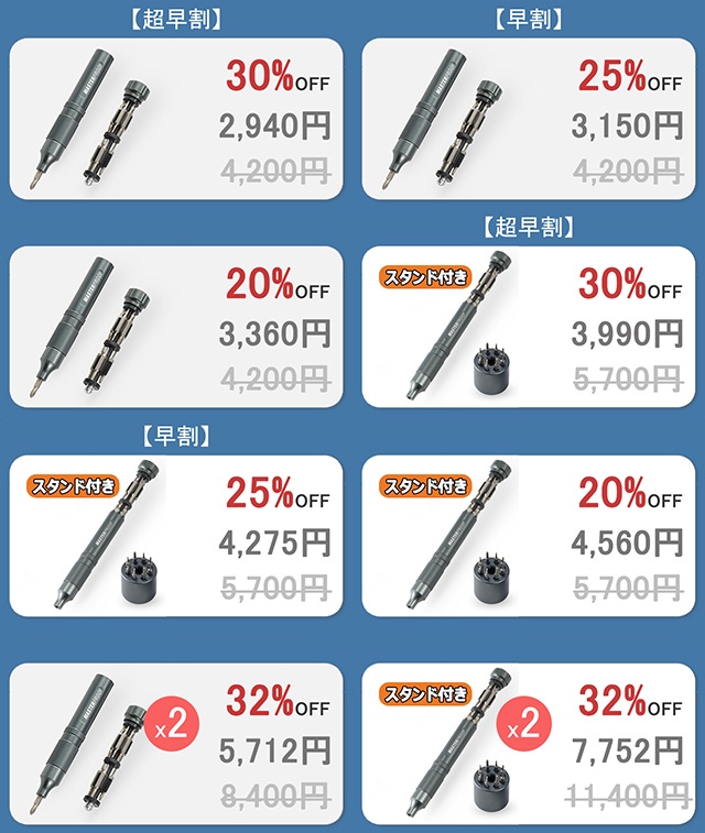 「Makuake(マクアケ)」は、実行者の想いを応援購入によって実現するアタラシイものやサービスのプラットフォームです。このページは、 プロダクトカテゴリの 「内蔵ビットが24種類付属!スリムかつ洗練されたデザインの精密ドライバー」プロジェクト詳細ページです。