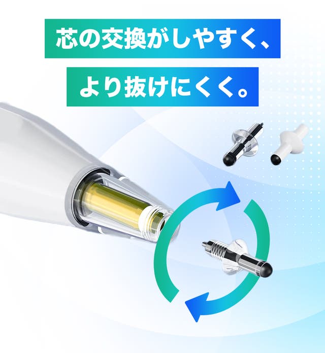 私たちが書き慣れている「従来の書き心地」 さらに「スクリューテクノロジー」によりらくらく芯交換が可能に! あなたのApple Pencilを、見た目も中身もまるでシャープペンにしてみませんか?