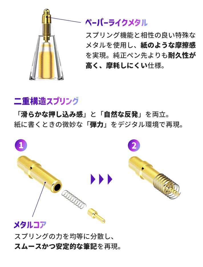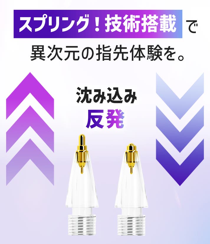 さらに 「スプリングテクノロジー」 により、沈み込みと反発 を生み出し、まるで本物のペンのような筆記体験を実現しました!