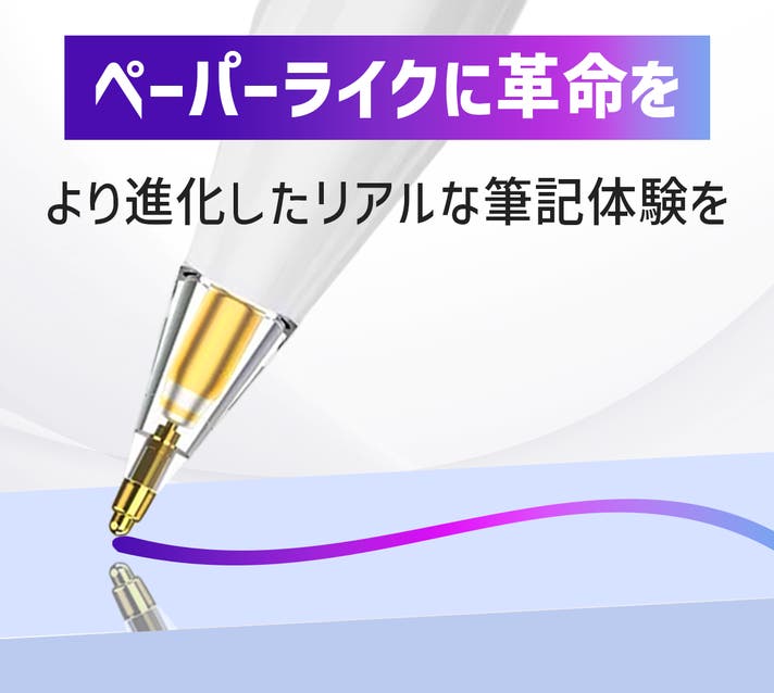 ※「紙に書く」とは、私たちが書き慣れているシャープペンやボールペンでの筆記により近い書き心地のことを指しています。そういったペンと形状が同一なことで書きやすい、低摩擦でツルツルと滑りにくい筆記を行うことができるという意味です。