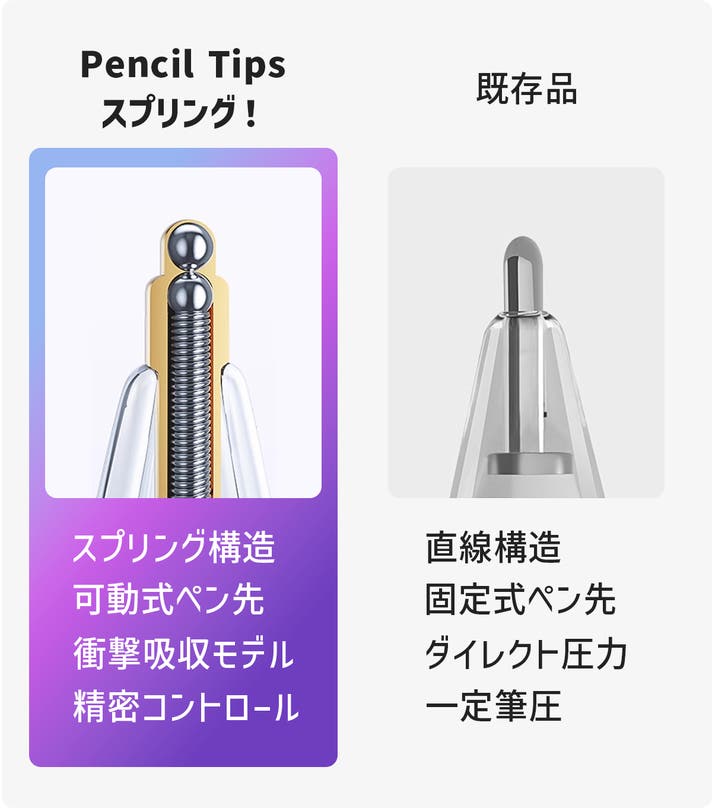 Pencil Tips スプリング!は、紙に書くような沈み込みと反発感 を再現する新感覚のペン先。