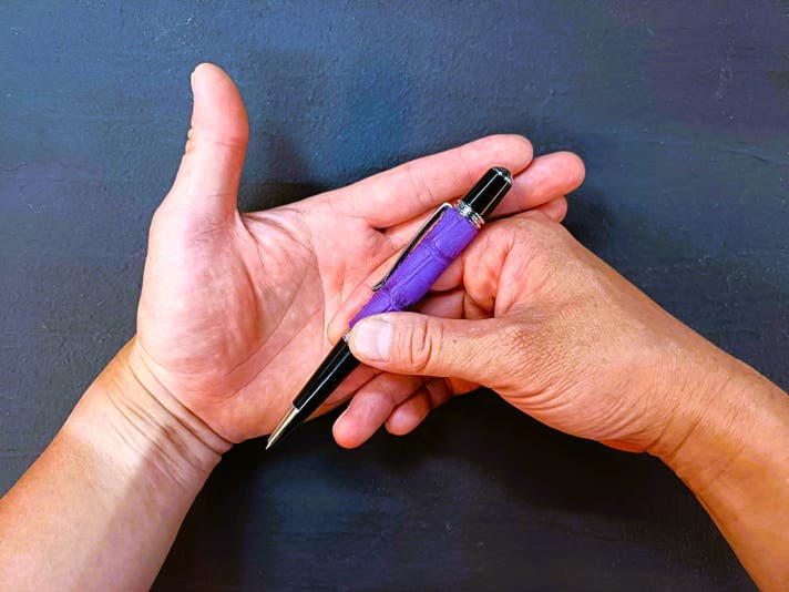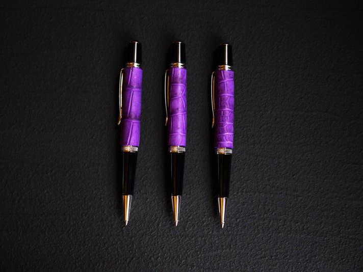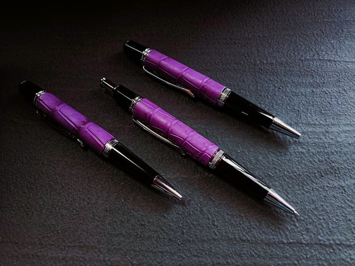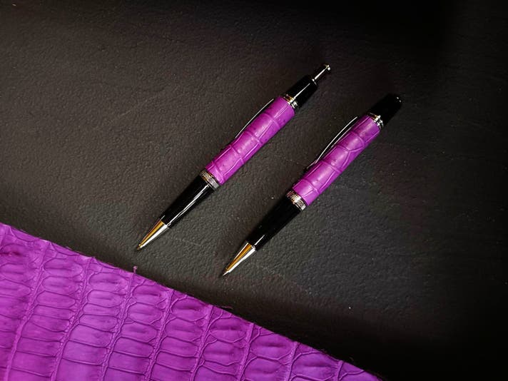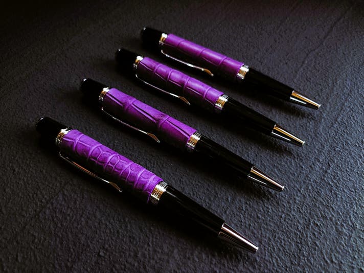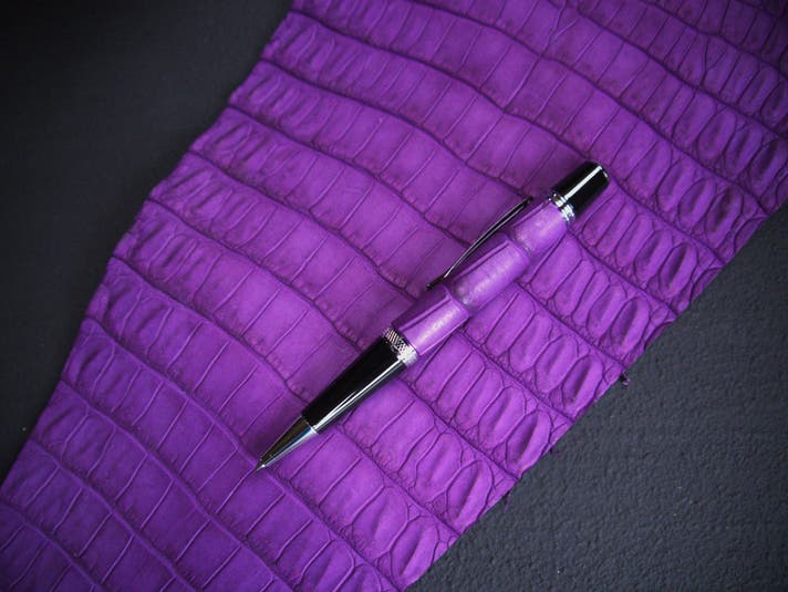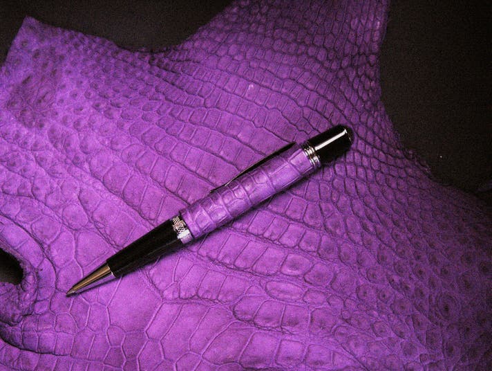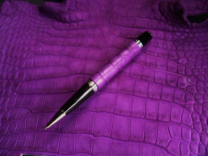 革職人が本気で向き合った、紫根染めクロコダイルの筆記具。