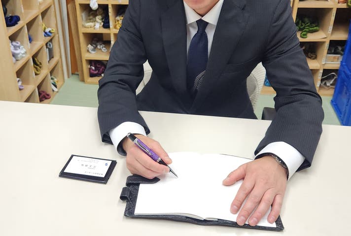 「仕事で使用しております。デスクに置いても絵になり気に入っております。クロコレザーの質感が手にしっくりと馴染み、持つたびに高級感を感じます。ペンの重量感も程よく、書く際の安定感があります。ビジネスマンにはぜひ手に取ってほしい逸品です。」(ビジネスでお使いの男性)