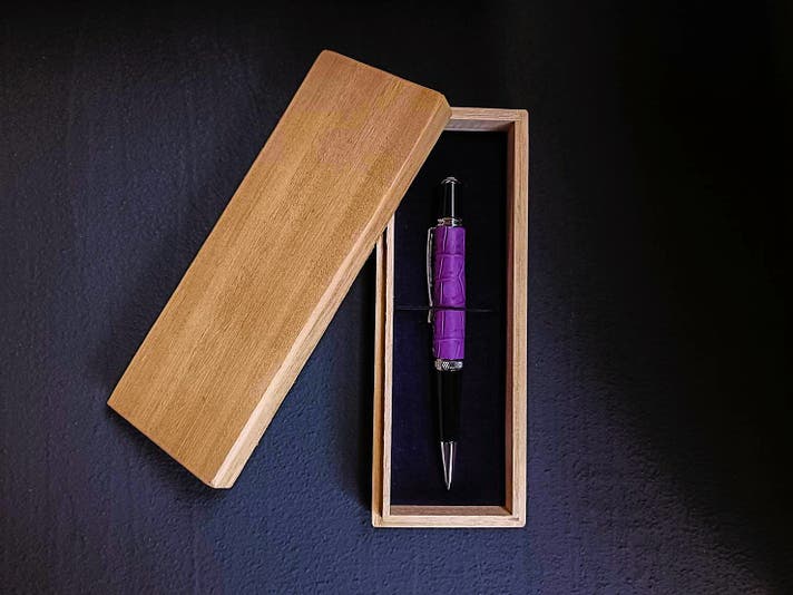 デジタル化が進む現代においても、大切な書類へのサイン、心を込めた手紙、創造的なアイデアのメモ…「書く」という行為には特別な意味があります。私たちは日本古来より位の高い色とされてきた「紫」と、革の王者クロコダイルレザーを組み合わせ、職人が本気で向き合った筆記具をお届けします。