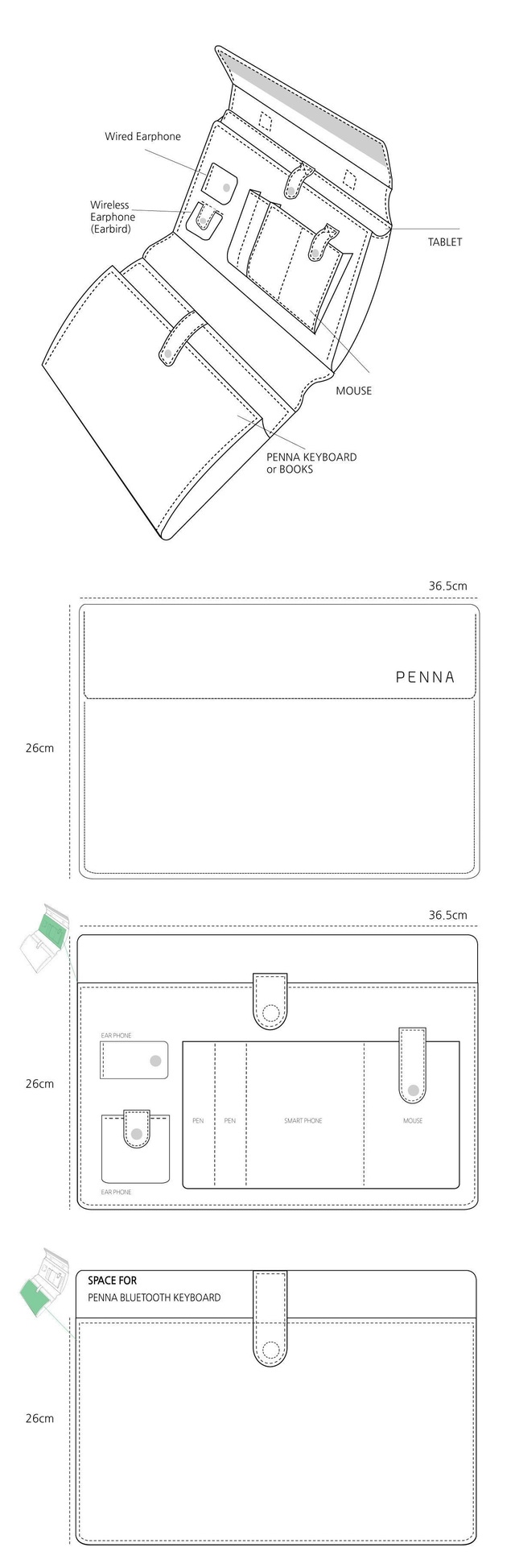 ペナ専用キーボードポーチとして設計された"ペナポーチ"はペナだけのためのポーチではなく、様々な収納スペースと高品質、デザインで愛されています。 特に移動中にパッドを簡単に取り出して使用できるように設計され、高い携帯性を誇ります。
