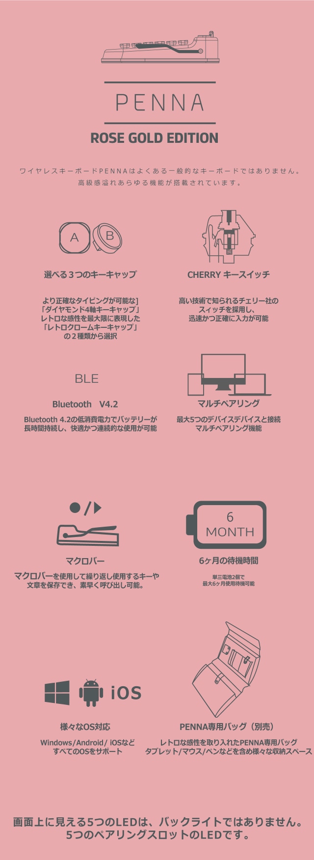 タイピング音をお聞かせするための映像で、実際の製品は[ペナキーボードローズゴールドエディション]で発送されます。