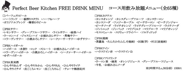 Perfect Beer Kitchenコース飲み放題メニュー(※2時間半(Lo,30分前))