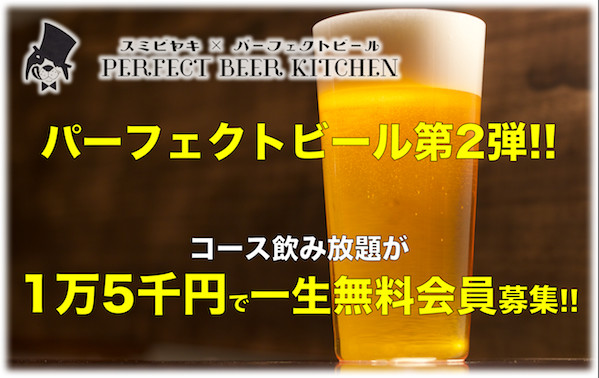 「最高品質のビール=【パーフェクトビール】専門店、"Perfect Beer Kitcen(パーフェクトビアキッチン)"OPEN半年記念にコース飲み放題の無料会員募集決定!!