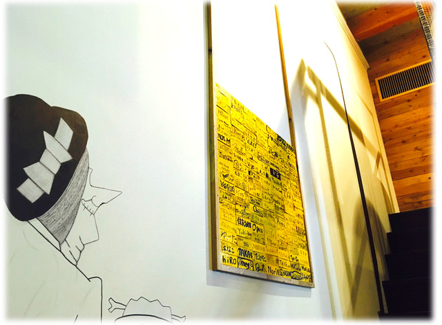 ※"Perfect Beer Kitchen"店内の壁の巨大ビールオブジェに、あなたの想いやお名前を記載した黄色い積み木をはめられます!