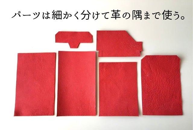 出来るだけ革を無駄にしないために、パーツを細かく分け、