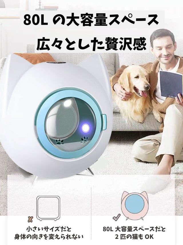 ペットの服やおもちゃへのUVライト照射可能が可能で、三重構造モーターで強風と騒音の軽減を実現した新世代のペットルームです。2匹の猫が同時に入れる、80L大容量の広々とした贅沢なスペースで普段部屋としてもオススメ♪