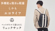 ペットボトル19個分の素材で作られたリュックは耐久性、耐水性は抜群でしかもしなやかな仕上がりです。