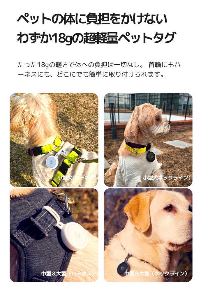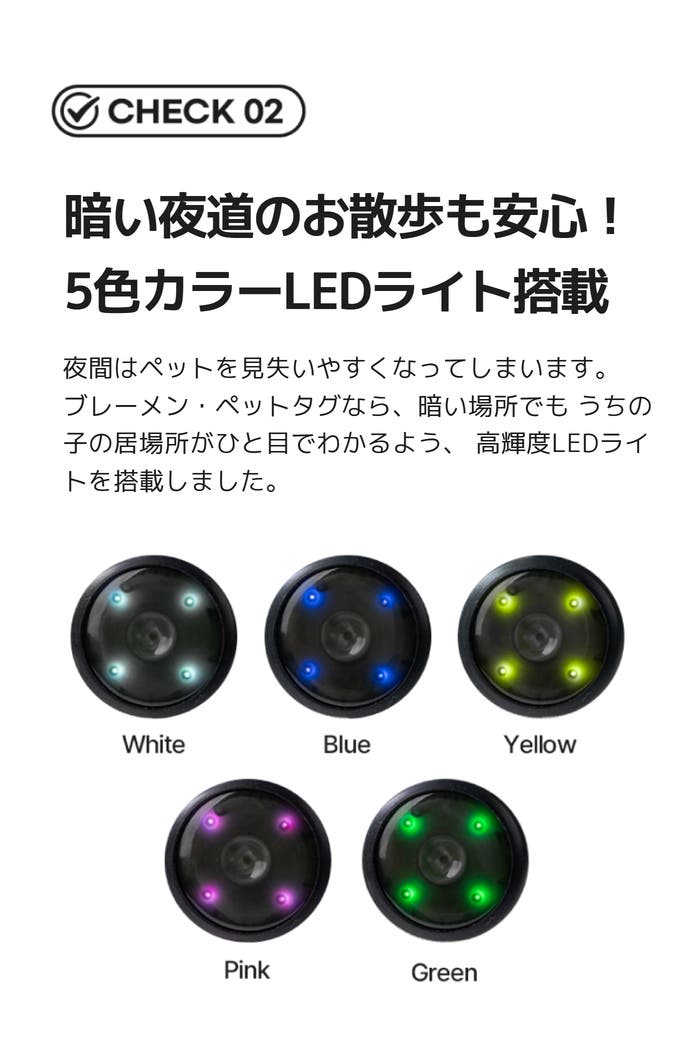 - 5色LEDが夜間でもペットの居場所をひと目で知らせる高い視認性(夜間散歩をサポート)