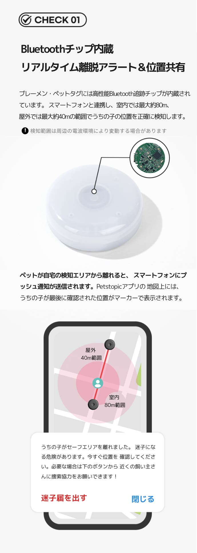 - Bremen ペットタグの追跡機能で、迷子になっても即座に居場所を把握できる