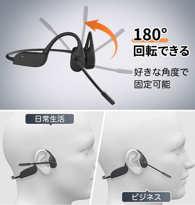 180度回転できるブームマイクをご自分に合わせて口元に調整することでマイクの精度を高めるとともに、使用しない時は後ろに折りたたんでおけば邪魔になりません。