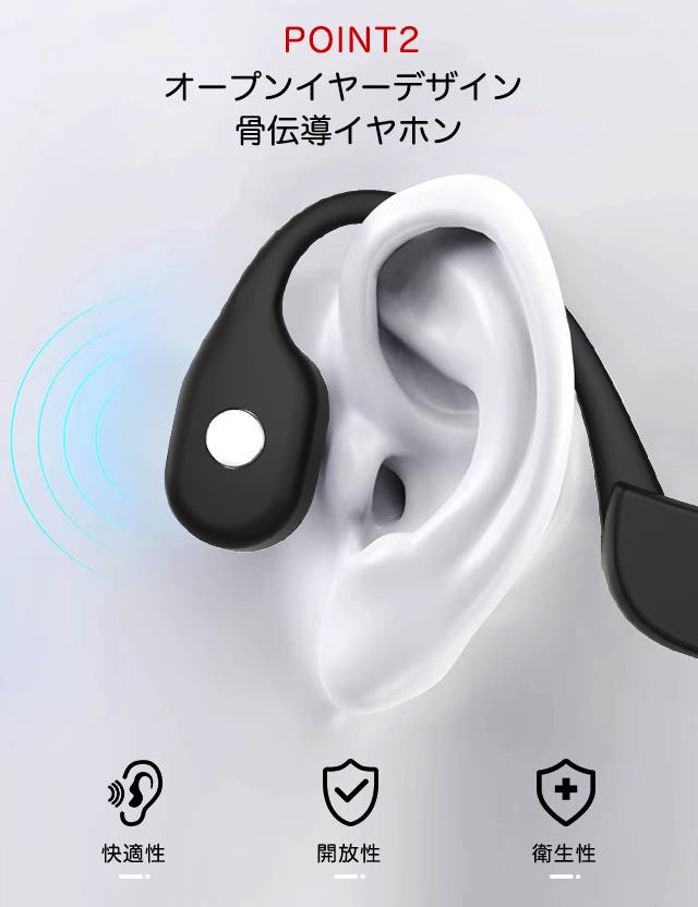 快適性:通常のイヤホンと異なり頭蓋骨に音の振動を直接伝えることによって、耳や鼓膜を介さずに音を伝えることができますので痛みがなく耳への負担も小さい。テレワークの長時間着用も快適!