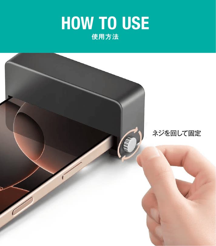 工具や複雑な設定は一切不要。回転式ロックネジとTPU保護ヘッドで、スマホに優しく、誰でも簡単に装着できます。