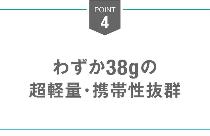 重さはわずか38g。ポケットに入れても負担にならない超軽量設計で、いつでもどこでも持ち運びが可能です。