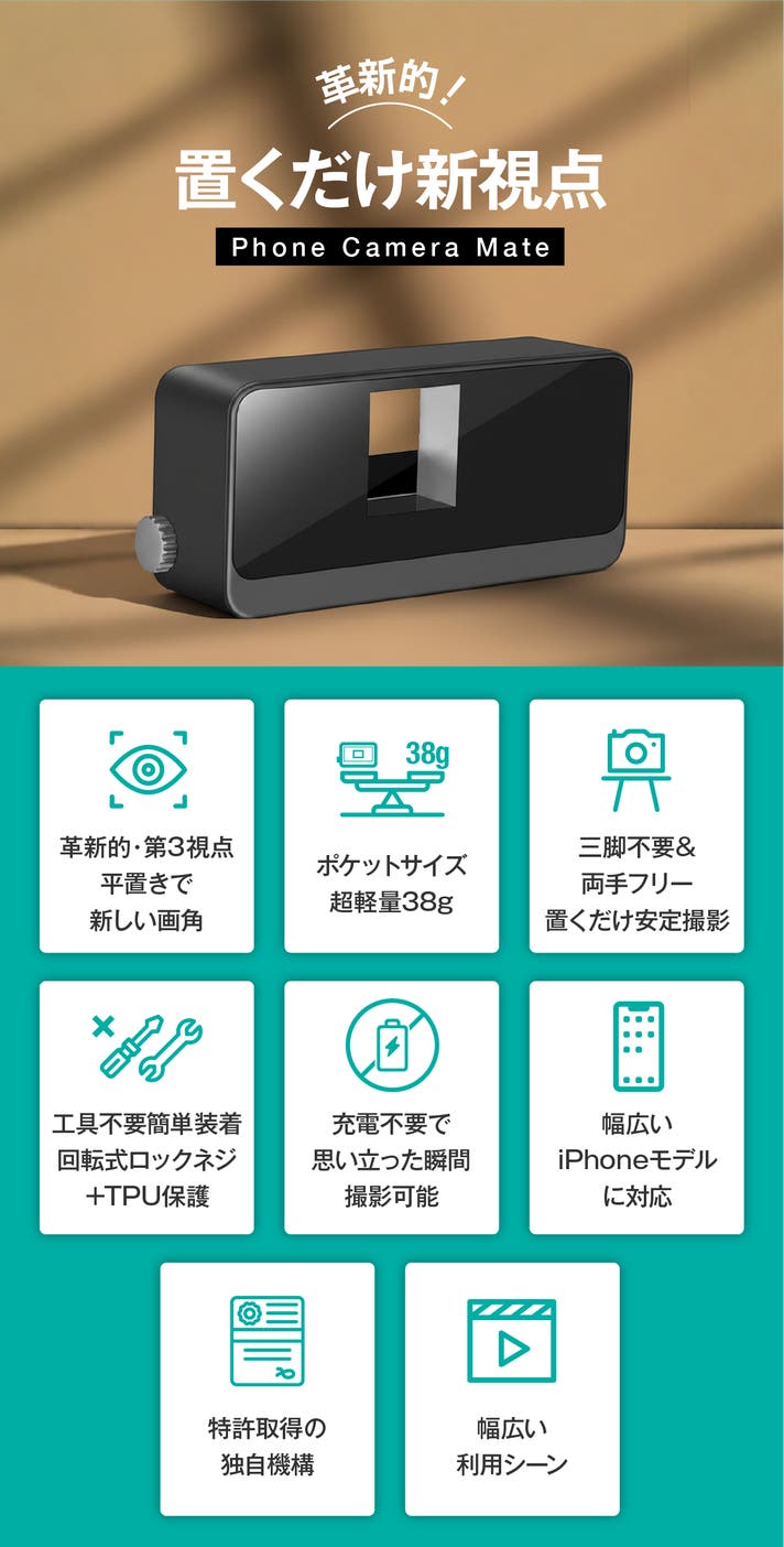iPhone Camera Mateは、iPhoneカメラにもう一つの視点を加える 革新的なアクセサリーです。