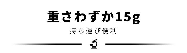 - レンズ本体の重さはわずか15g、取り付けもかんたん!いつでもどこでもミクロの世界へ。