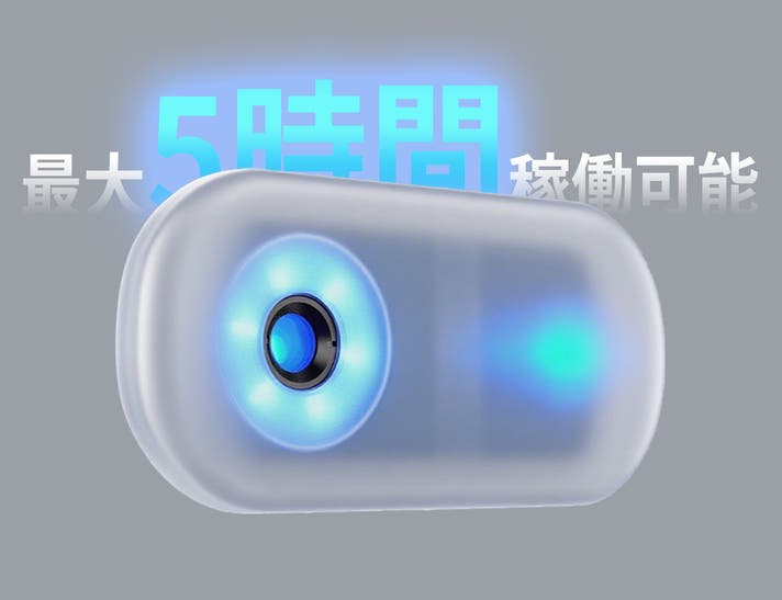 100mAhの大容量バッテリーを内蔵、最大5時間連続使用可能。