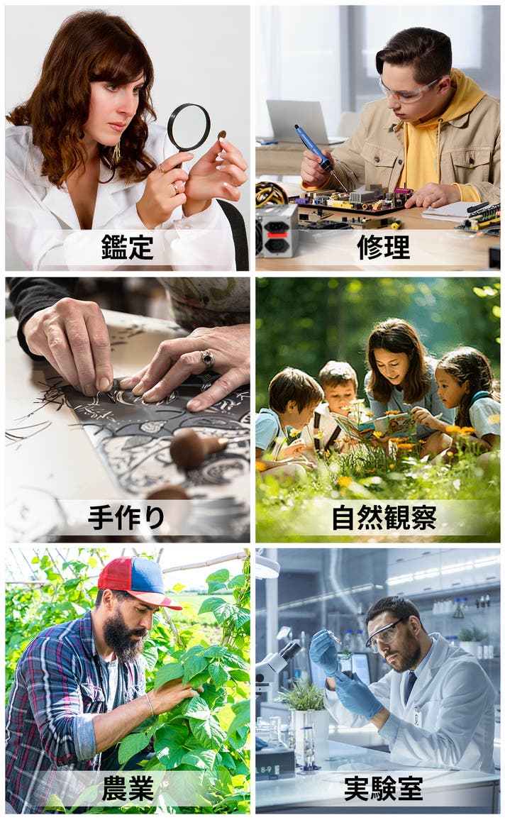 さらに、スマホカメラのズーム機能と組み合わせることで、さらに対象物の細部を拡大し続け、より詳細な観察が可能。宝石の鑑定から回路基板の修復まで、様々な分野で大活躍!