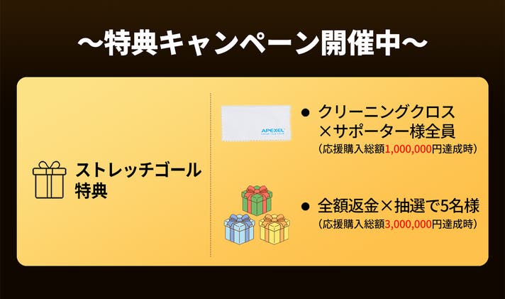 このプロジェクトはAll in型です。目標金額の達成に関わらず、プロジェクト終了日の2025年10月30日までに支払いを完了した時点で購入が成立します。