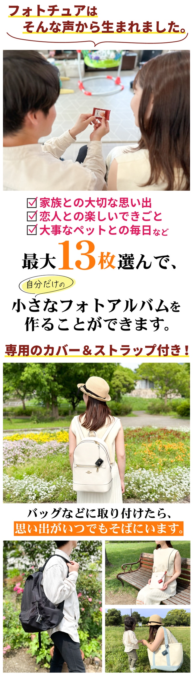 - そんなあなたへいつでも思い出を見返せて、どこへでも持ち運べる小さなフォトアルバムをお届け!