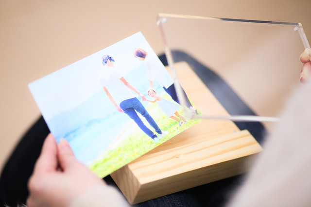 5,現像した写真をオリジナルフォトフレームに挿入すれば、あなたからのギフトの完成です。