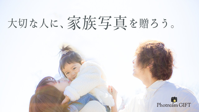 PhotreamGIFT(フォトリームギフト)は、家族写真の出張撮影を、大切な人へプレゼントできるギフトサービスです。