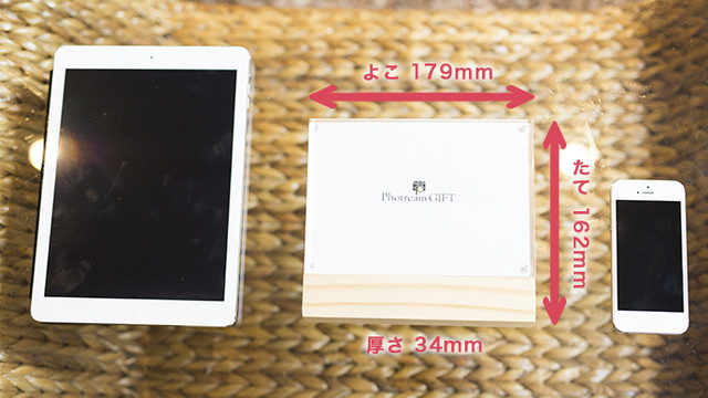 デスクにもピッタリサイズの小サイズ(縦/140mm 横/180mm 幅/18mm)で、家族やお子様の写真をデスクやご家庭にも。