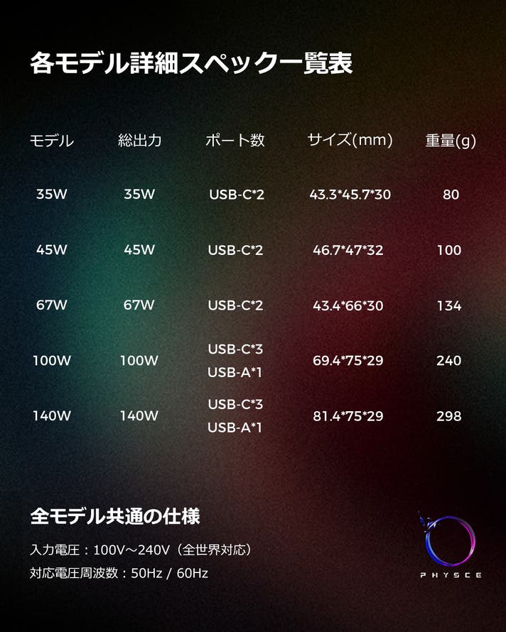 PHYSCE RGB Eco Fast Charger 140W スターダストホワイト × 1