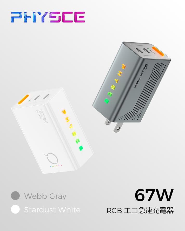 PHYSCE RGB Eco Fast Charger 67W ウェブグレー × 2