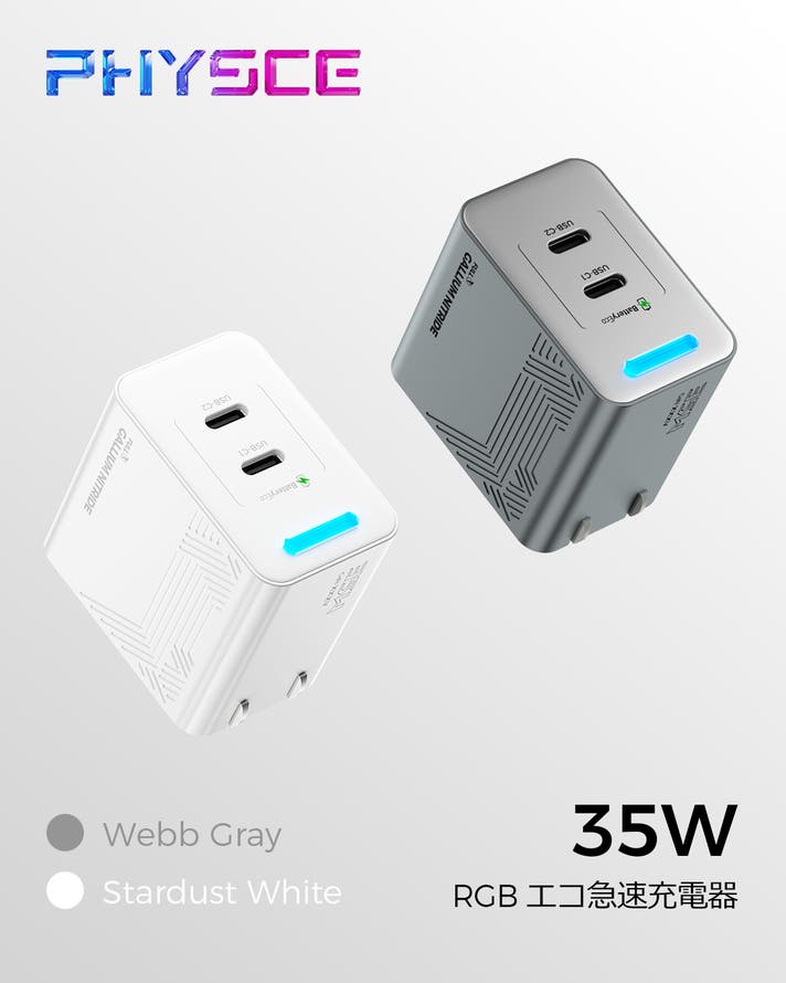 PHYSCE RGB Eco Fast Charger 35W ウェッブグレー × 2