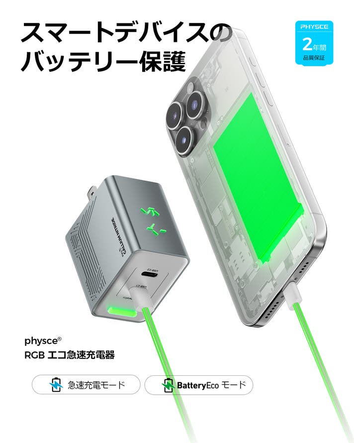 - スマホの未来を灯す充電器。バッテリーケア「エコ充電」×心癒す「3Dライト」