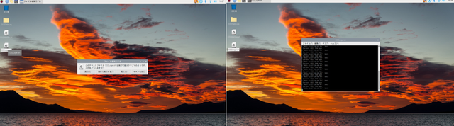 4.メッセージボックスが現れますので「端末で実行する」をクリックしてください。(観測が開始されない場合(端末画面でエラーメッセージが出た場合)は、端末画面を閉じ、3と4の作業を繰り返してください)。二酸化炭素濃度観測ロガーが起動して、毎秒(1秒単位で)、二酸化炭素濃度の観測とログの記録が始まります。