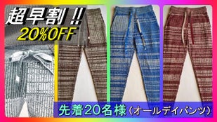 【マクアケ限定特別価格】オールデイパンツ 超早割20%オフ 先着20名様