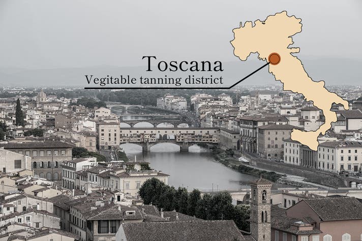革の聖地とも呼ばれるイタリア・トスカーナ地方の伝統製法によって鞣(なめ)された高品質なベジタブルタンニンレザーを、贅沢に使用しました。