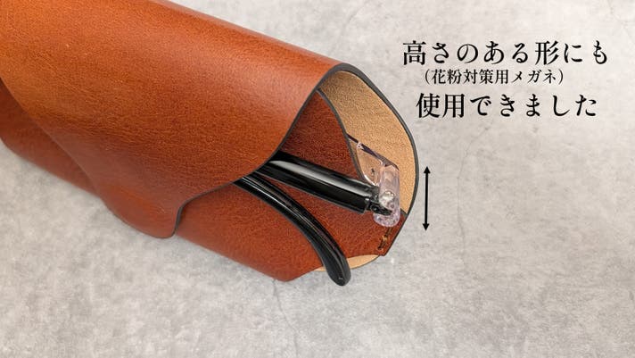 レザー製のメガネケースは、内側がそのままレザーの裏革を使用したものもありますが、レザーの裏革は毛足が一定でなく粗いため、あまりおすすめできません。