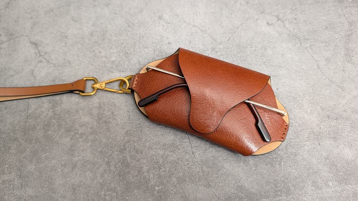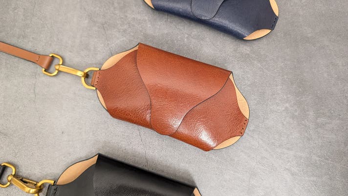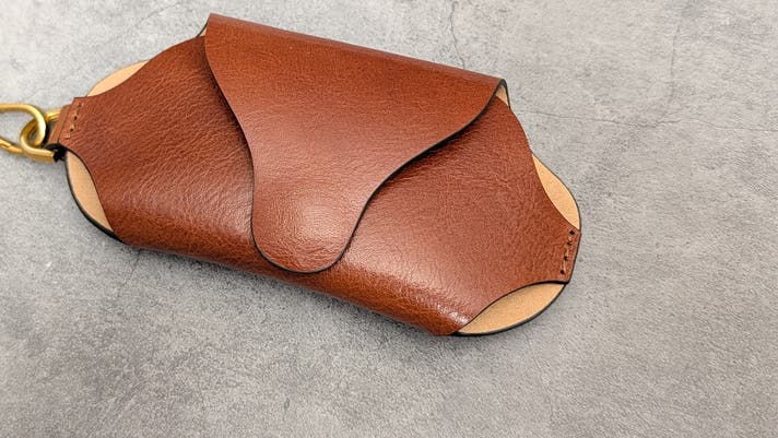 ベジタブルタンニンレザーを贅沢に一枚で裁断し、たたむことで成形する、美しいメガネケースです。