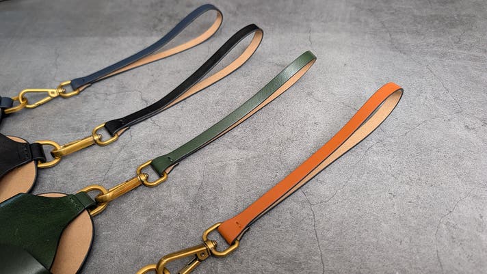 バッグのハンドルやベルトループに取り付け可能な短めのストラップです。